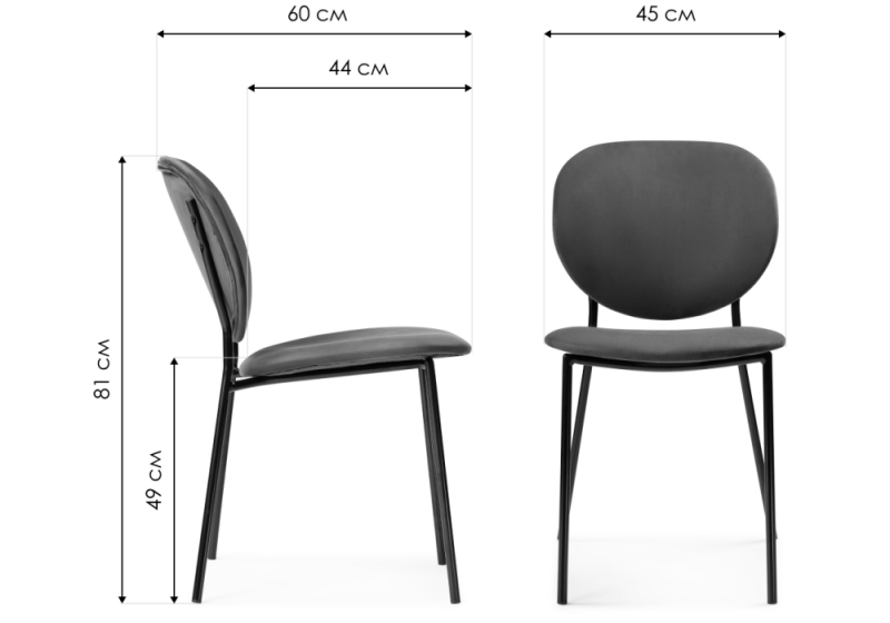 Стул на металлокаркасе Саранда графитовый / черный глянец (45x60x81)