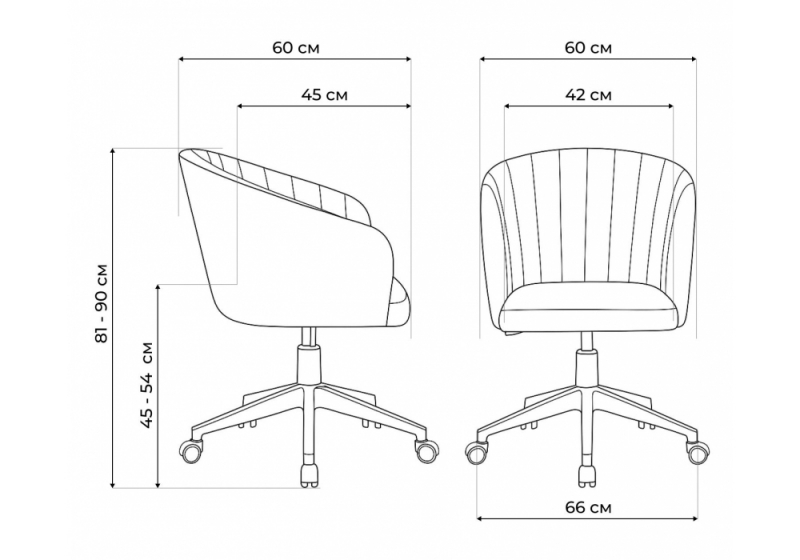 Высота сиденья максимальная: 54 см Диаметр крестовины: 66 см
