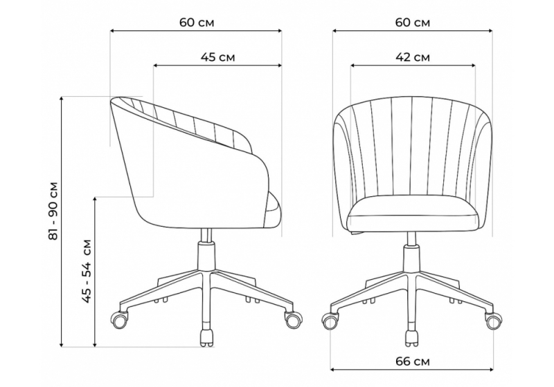 Высота сиденья максимальная: 54 см Диаметр крестовины: 66 см