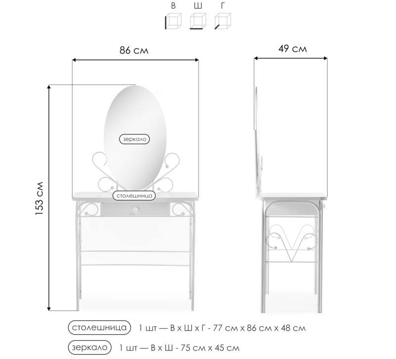 Туалетный столик Клео 3 белый / белый (86x49x153).